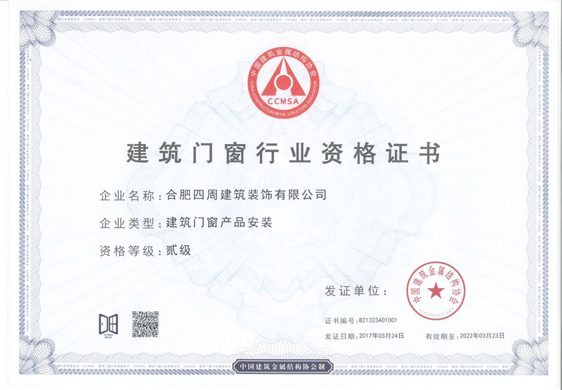 建筑門(mén)窗行業(yè)資格證書(shū)